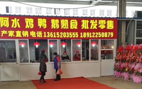 12月28日上午,猪肉交易区内人潮涌动,热闹异常,阿水熟食门店在肉类区开业。明亮的广告牌,干净的操作间,熟牛肉、爆鱼、香葱鸡、盐水鸭分门别类的放在出样台上,飘出阵阵香味,吸引着广大食客。据老板介绍,开业期间有优惠活动,所有食品一律八八折,免费试吃,好吃再买。
