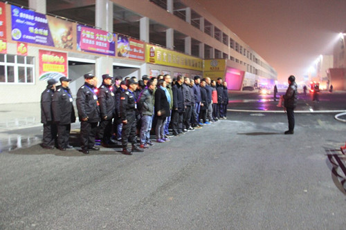 为确保元旦、春节两节期间消防安全,增强员工消防安全意识、提升安全防范与自救能力,切实做好今冬明春火灾防控工作。2016年12月31日,通农物流安保处联合各交易区共五十余人,在综合大楼西场地开展节前夜间消防实战演练。