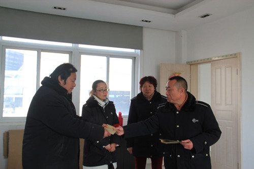 1月25日上午10时许,蔬菜交易区经理沈新华慰问因病致困,并坚守岗位的纪兵;失明儿子患有尿毒症的沙会英以及儿子患有脑瘫的宋静。深入了解他们实际困难并送去节日慰问。沈新华经理仔细询问了纪兵、沙会英儿子、宋静儿子的病情,并鼓励他们要坚强面对困境,有困难要及时向组织反映,请求帮助,并一再对他们的敬业和克服困难的精神表示敬佩。