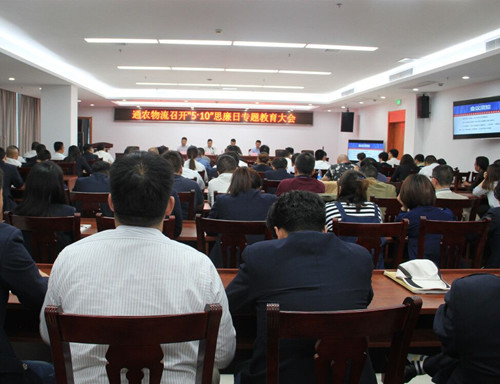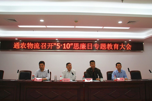 5月15日下午,通农物流党总支组织所有管理人员及班组长在综合展销楼4楼会议室召开“5•10”思廉日专题教育大会,公司常务副总经理曹俊同志主持大会,与会人员首先观看了警示教育片《触网的代价》。