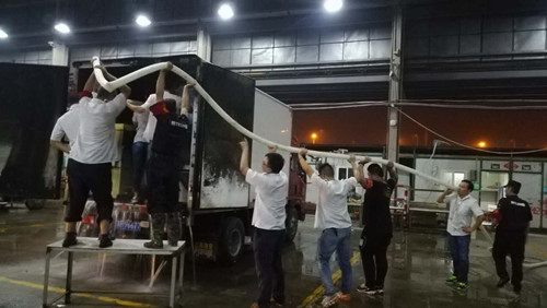 2017年8月11日凌晨0:20,水产虾区南棚140号摊位上一辆牌号为苏F966T7的箱式货车突发自燃,黑色浓烟从紧闭的车厢里往外冒,火苗在车厢打开的一瞬间迅速串出,火势凶猛,当时自燃车辆周围车流人流密集,情况十分紧急。