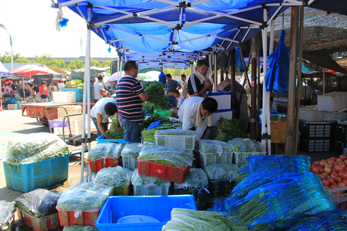 记者在通农物流采访过程中发现,因为天气炎热不易久放,到了下午很多地产菜的经营户都在减价“大甩卖”,其中小白菜,上午价格为2.5元/斤,下午价格为2元/斤;文蛤菜,上午价格为1.5元/斤,下午价格为0.8-1元/斤。附近市民成了拼菜一族,退休在家的大爷大妈们告诉记者,“我们每天下午邀约乘坐公交车来通农物流买一筐菜,几个人分,他三斤、你五斤,顺便也给子女们送一些,农贸市场菜太贵了,也难怪,小贩途中有损耗、还有运输费、摊位费,自己再稍微赚一点,零售比批发贵一两倍也正常,我们反正退休在家没啥事,出来逛逛市场,批点蔬菜,买点肉、虾、鱼,新鲜,通农物流每日监测,食品安全有保障。” (党群办 季媛媛)