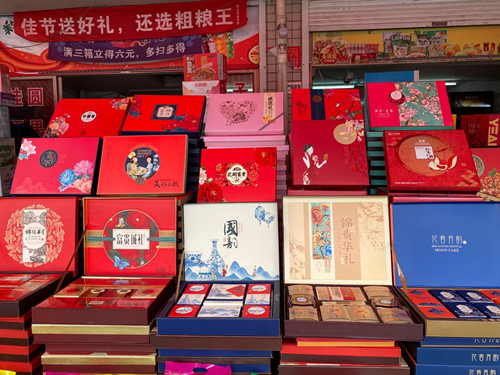 中秋节是中华民族最重要的传统节日之一,“月饼”是这个节日当仁不让的主角,承载了人们渴望团聚和美好生活的愿望。在干货区,月饼几乎占据了所有店面的醒目位置,散装、礼盒装、各种口味应有尽有。