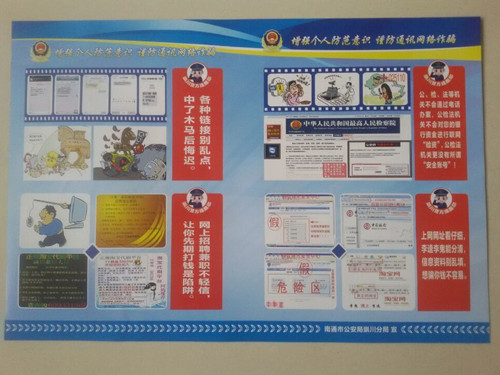 为迎接“双节”带来的重大挑战,安保部全体员工在思想上高度重视、行动上高度自觉、作风上高度严谨,积极做好各项准备工作。节前,安保部深入各交易区发放“增强个人防范意识谨防通讯网络诈骗”和“防范电信网络诈骗”等警示教育宣传单,提醒广大经营户和客户加强个人安全防范意识,防止上当受骗。