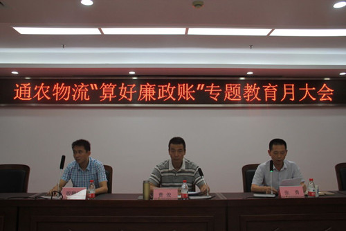 最后,通农物流总经理曹俊作题为“绷劲廉政弦 算好廉政账”讲话,曹总从八个方面要求全体党员管理干部算好人生八笔账:一要算好政治账,志高方能致远;二要算好经济账,勤耕方能富足;三要算好名誉账,清廉方能扬名;四要算好家庭账,守身方能家圆;五要算好亲情账,品高方能会友;六要算好自由账,自律方能无拘;七要算好健康账,心良方能体壮;八要算好责任账,负责方能作为。全体党员干部要切实抓好各自的廉政八笔账,按照廉政建设的要求,用好手中的权利,做好防腐拒变的防线,保障和促进公司又好又快发展,更好地服务南通市民。