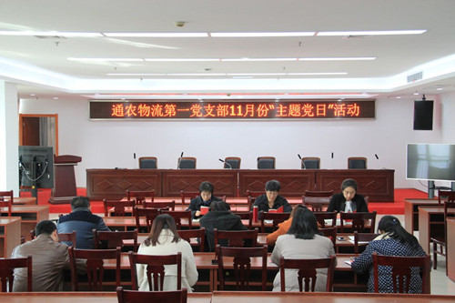 11 月24日下午,通农物流第一党支部在综合展销楼4楼会议室召开“主题党日”会议,会议由支部书记游珩同志主持,支部11名党员参加了会议。