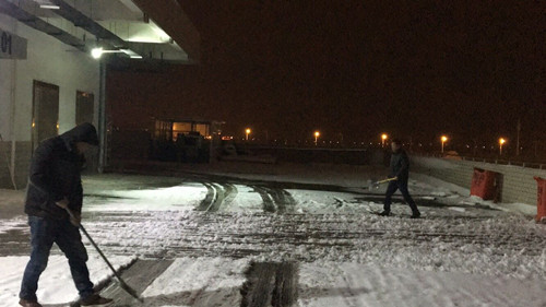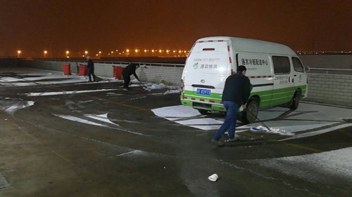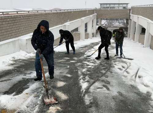 领导带头对道路及坡道上进行铲雪、撒盐、除冰清扫工作,提醒每位驾驶员做好安全防护工作,最大限度的减少因冰雪天气对道路安全带来的不便和影响。积极应对冰雪天气,自理门前冰雪,解决防寒防冻,确保冬季生产安全,努力营造一个安全有序的运输环境。(配送中心 严匀蔓)