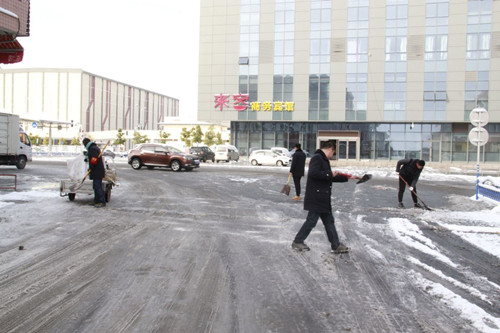 1月25日大雪过后,26日早晨道路结冰,来往市场的人流量较大。为保障前来市场采购年货的消费者、进货商及在市场经营的商户的出行安全,干货区安全秩序管理人员及现场员工在经理助理范一凡的带领下,不畏严寒,分片负责,在5、6、7号大厅中间及两侧主干道上奋力推雪、铲雪、扫雪。在所有人员齐心协力的共同努力下,经过了2个多小时,主干道等重要路口的积雪被扫除,减少了意外事故的发生。(干货部 吴珍凤)