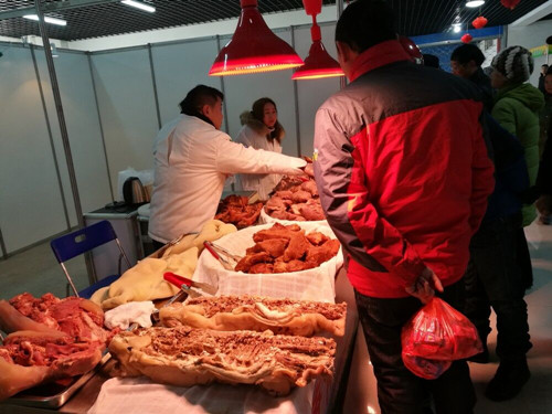 展会主要分蔬菜、水果、水产、粮油、干货、熟食六个区域,展出的商品除各区优势产品,还展出了黄酒、腊肉、香肠等具有春节特色且能增添过年气氛的一些传统年货食品。展会开幕不久,通农小厨参展的熟食展位就被采购的人群围住,产品销售火热。另外,保健品、茶叶、糖酒类产品也有众多商品参与此次展会。