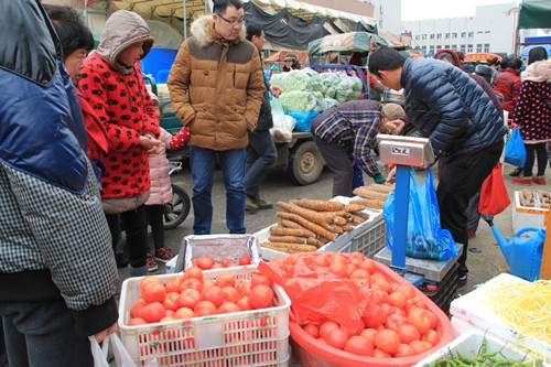临近春节,蔬菜市场正值销售高峰,市区农贸市场、超市以及南通周边苏州、上海等多地商户都来通农物流蔬菜区进货,每日进场车辆不断增多,为此,蔬菜区加大了经营户囤货力度。