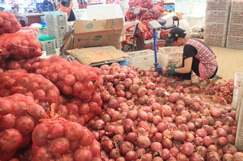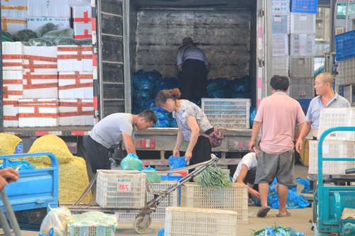 “每天有近900车左右的蔬菜运抵,其中客菜占据蔬菜总供应量60%以上。浙江冬瓜批发每斤0.3元,山东洋葱每斤也不过0.6元。”昨天上午,通农物流蔬菜交易区里一片忙碌,相关负责人介绍,监测数据显示,本周蔬菜供应量达9700吨左右,蔬菜价格整体平稳,环比上周下跌2.8%,但较去年同期上浮5.65%。目前海安东台、内蒙土豆、本地西红柿、寿光杂货、兰州杂货、毛豆、洋葱、海门杂货等蔬菜销量靠前,价格在0.3-1.9元/斤不等。