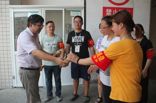 7月20日起,通农物流总经理室、工会领导每天分批到交易区慰问一线员工,公司食堂每日提供免费绿豆汤供职工消暑降温。(党群办 施婧婧)
