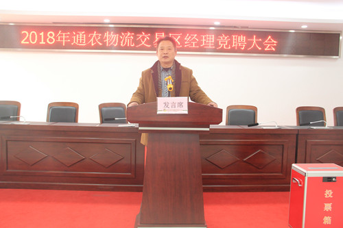 为切实做好2018年交易区经理公开招聘工作,通农物流于12月10日发布了招聘公告,全公司共有11名同志踊跃报名,接受组织挑选。根据有关规定,公司招聘领导小组对11位报名人员逐一进行了资格审查,符合条件的有10名。12月18日下午,通农物流交易区经理竞聘大会正式召开,会议由通农物流党总支副书记兼工会主席张林芳主持,集团公司组织人事处主任顾海晨、监察审计处处长金林全程监督。