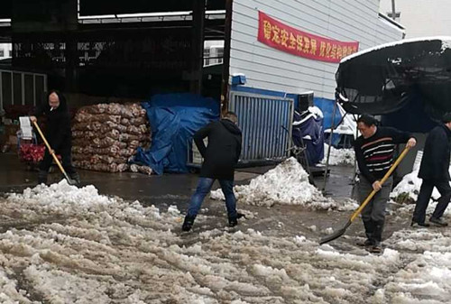 春雪不期而至,银装素裹的通城分外美丽。当大伙儿都沉浸在欣赏春节假期美妙雪景的喜悦中的时候,通农物流的小伙伴们早已撸起袖子,为市场经营户们的安全出行忙碌起来。