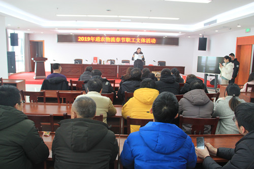 为让通农物流员工过上欢乐、祥和、喜庆、文明的新春佳节, 2月11日,通农物流在展销楼四楼大会议室举办了精彩纷呈的新春文体活动,有掼蛋比赛、知识竞答、套圈等活动,活动吸引了各部门职工热情洋溢的参与。