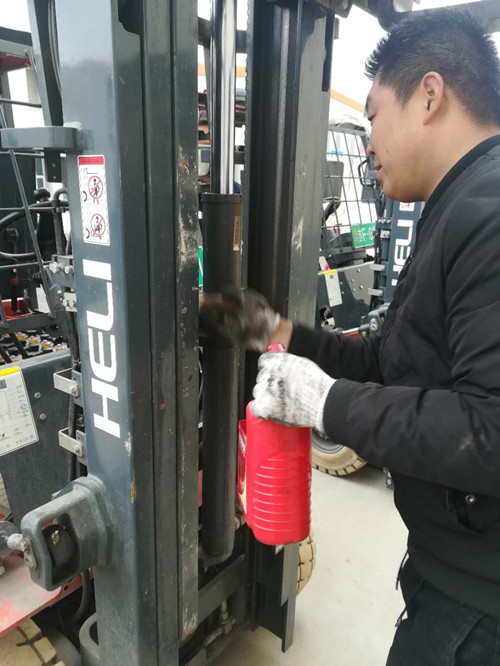 2月19日,合力叉车厂家对冷库13台电动搬运叉车进行了季度保养。