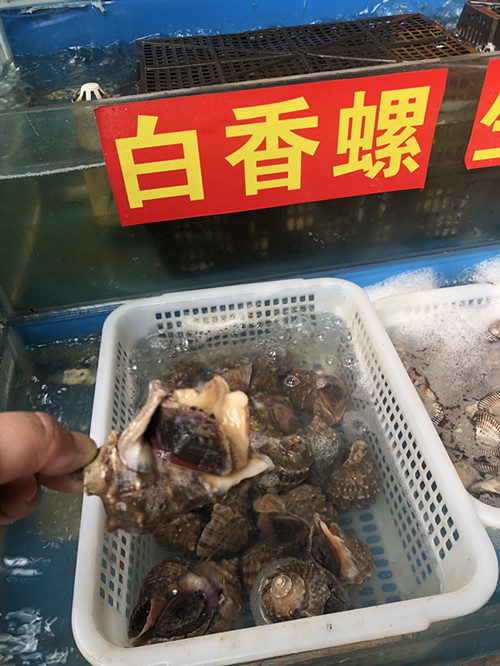 在购买螺蛳的时候要选择外壳呈青色,且有一定光洁度的螺蛳。太大的螺蛳肉质粗糙,太小的又食之不甘。一般选个头不大不小,壳的颜色是褐色里透着黄绿色的螺蛳。与此同时,除了带壳的螺蛳外经营户还准备了大量的螺蛳肉,节约了消费者的时间。现在的螺蛳价格也是非常优惠,每斤2.5—3元。白香螺在33—35元/斤,相思螺分大小,大的35元左右/斤,一只大约半斤重,小的相思螺30元/斤。花螺70元左右/斤,海螺28—30元/斤。(水产区 陈珊珊)