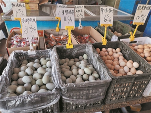 5月6日立夏,南通人素有立夏吃蛋的习俗,俗称“立夏吃只蛋,气力大一万”。受“节日效益”影响,蛋类产品十分走俏,这两天不少市民特意前往通农物流选购鸡蛋、鸭蛋、咸鸭蛋。记者了解到,目前洋鸡蛋8.5元/公斤、草鸡蛋9.0~9.6元/公斤、鲜鸭蛋11.2~11.6元/公斤、鹌鹑蛋10.6元/公斤。