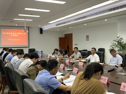 6月18日,市市场监督管理局食品经营处处长蒋宝祥等一行莅临通农物流,对2019年上半年食品安全管理工作进行专项督查。通农物流总经理徐径、副总经理姜浩等陪同。