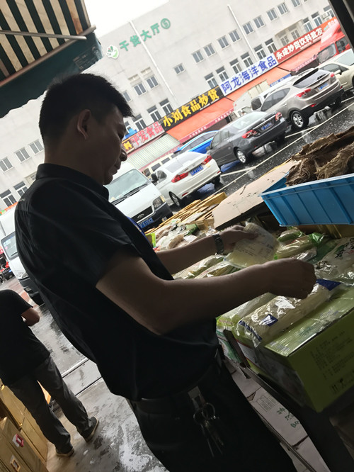 本次专项检查由副经理顾晶带队,主要就干货大厅的商户三证是否齐全,所经营的产品外包装是否完好,有无过期、三无食品,食品的检测报告、产地证明是否齐全,商户一票通的填写是否规范等多方面展开检查。