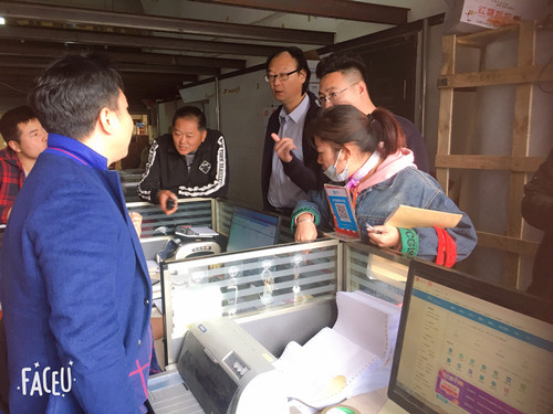 11月8日,蔬菜区总经理吕剑、副总经理陈坚带队对蔬菜大厅西侧店面房进行“一票通”检查和推广。检查从南向北,挨家挨户的进行,当遇到“一票通”使用规范的经营户,吕经理总会夸赞经营户能够配合工作,鼓励他们继续做好“一票通”的使用,维护好自身的权益。当遇到“一票通”使用不符合要求时,陈经理总是耐心的与经营户沟通,告知“一票通”使用的意义和正确的填写方法。