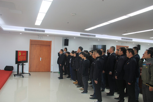 与会党员在通农物流党总支书记、总经理徐径的带领下,郑重举起右拳,面对党旗,庄严宣誓,回顾入党时的那份初心和庄严承诺,所有党员同志还结合自身成长经历和岗位职责,表达了自己坚定信念和为共产主义奋斗终生的决心。