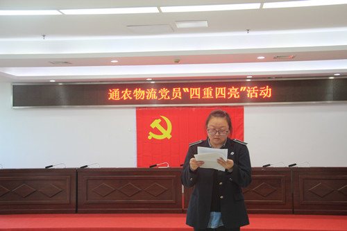 本次“四重四亮”活动是“不忘初心、牢记使命”主题教育的重要组成部分,通过“重读入党志愿、重温入党誓词、重忆入党经历、重问入党初心”,要求“党员亮身份、服务亮承诺、工作亮标准、担当亮作为”,进一步激励大家坚守初心使命、勇于担当作为,以更加饱满的热情为通农物流高质量发展做出新的更大的贡献。(综合部 居媛媛)