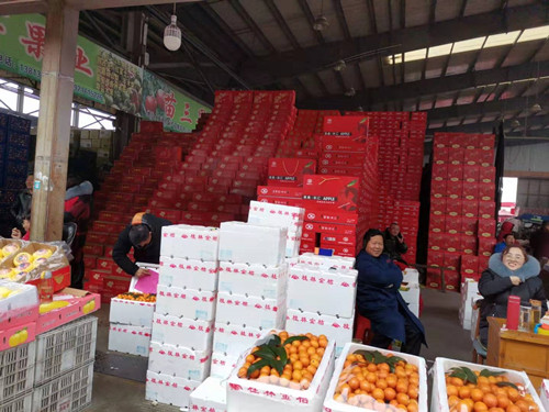 随着春节进入倒计时,水果交易区也迎来了销售旺季。在交易区各处,我们可以看到各个摊位前,一箱箱水果堆积如山,各个种类的水果琳琅满目。