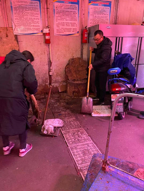 春节的脚步越来越近,为让广大经营户和消费者干干净净过新年,1月10日,水产(肉类)交易区经理丛俊杰、胡德明,主办潘继东、缪亚山、周扣林带领当班员工对交易区进行了安全卫生整治行动。