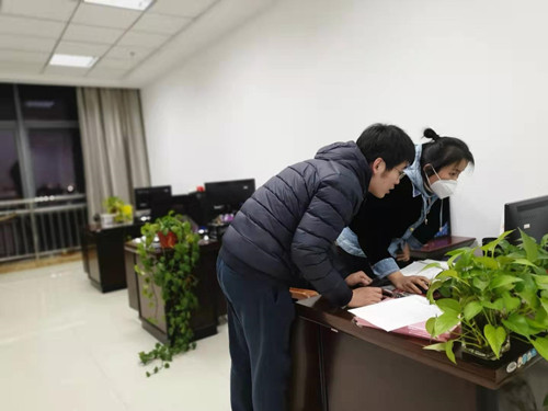1月27日晚8:00-11:00,综合部陈文雪和负责广播系统的入党积极分子张春明,加班进行疫情防控宣传广播录制,一直工作到深夜。