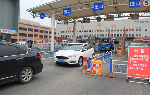 在通农物流的南大门可以看到,所有入场人员均需主动出示有效身份证件,配戴口罩,配合工作人员测量体温且体温正常后,方可入场。如有没带身份证的、没戴口罩的、有发热症状的,一律不得进入,并按规范处置。市场严查外地牌照车辆,尤其是湖北武汉地区和浙江温州地区牌照车辆一律不得进入市场。