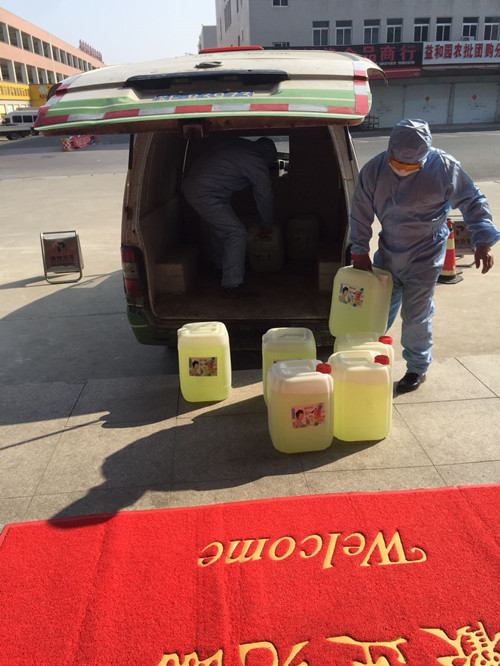 为做好疫情防控,顾及全员上下安全,2月1日承包人统一为大家购买防疫服。2月4日配送中心积极向公司赠送10桶84消毒液,为奋战在一线的工作人员提供了有利的物资保障。