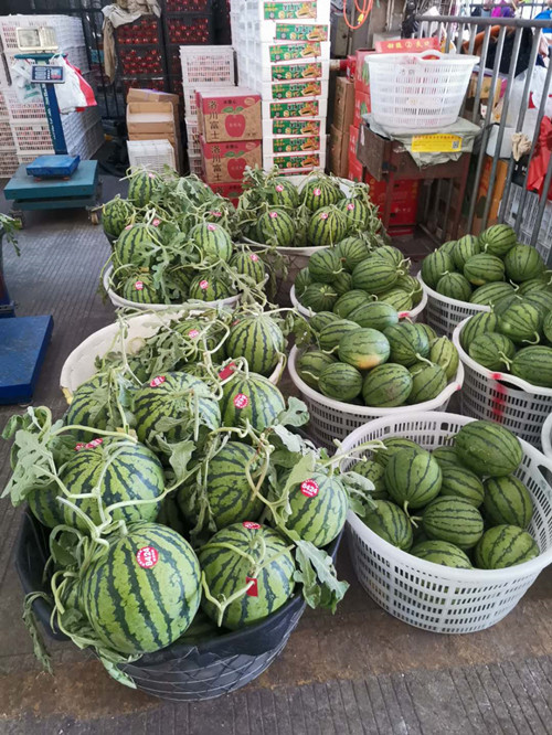 早春红玉,批发价格在4元/斤左右;地产8424,批发价格在4元/斤左右;特小凤,批发价格在4.5元/斤左右;海南麒麟瓜,批发价格在3元/斤左右;金星瓜,批发价格在3元/斤左右。据市场经营户介绍,今年西瓜产地种植面积增加了四分之一,预计今年西瓜价格较往年相比会低一些。五一假期即将到来,爱吃西瓜的市民可算是有口福了,等月底大量上市,到时西瓜价格会开始走下坡路。