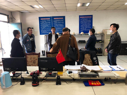 4月22日上午,崇川区商务局副局长马晓峰带队莅临拼搏官方网站检查安全生产情况,公司副总经理姜浩、安保部经理范一凡、副经理胡建博陪同检查。