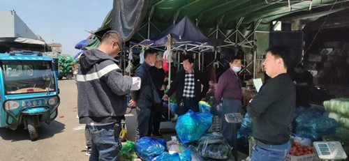蔬菜交易区一刻也不敢懈怠,迎难攻坚,全面筑牢蔬菜安全防线。(蔬菜区 卜海霞)