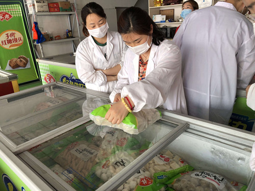 我检测中心员工针对发现的问题,当场提出了具体整改意见。要求商户将不规范的预包装食品立即下架,溯源并通知其整改,进一步督促各经营户加强食品安全意识,更加完善其经营环境卫生状况。同时,疫情期间,由于批发市场的特殊性,更是要督促各经营户在营业期间全程佩戴好的口罩手套,加强自身防范。