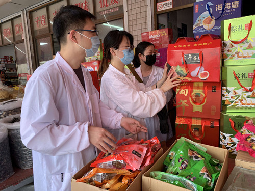 端午佳节将至,整个市场里往来购货的车辆络绎不绝,呈现出一派欣欣向荣的景象。又逢疫情略有反弹形势,6月19日下午,我公司检测中心检测员对节日期间市场供应的各种食品更是加大了检测力度,组织了一次端午节专项巡查抽查活动。