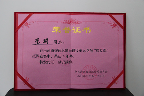 近日,通农物流积极报送80后退役军人范渊参加由市交通运输局举办交通系统退役军人党员“微党课”授课竞赛,范渊同志在比赛选拔中脱颖而出,讲授的《不忘初心、牢记使命,国家兴亡、我的责任》,与来自交通各企事业单位的12名选手同台竞技,最终,荣获“微党课”授课竞赛三等奖的好成绩,为通农退役军人增光添彩,树立了良好的榜样。(综合部 居媛媛)