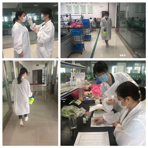 同时,为有效预防和控制新冠病毒疫情的蔓延,我们也加强了自身的检测,每日上下午测量体温;承诺不离开本市,不与高风险地区人员接触;平时加强锻炼,增强抵抗力。实验室每日两次定时定量的消毒,不给病毒留机会!(食安部 张云)