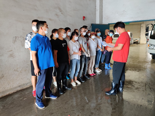6月28日中午,为贯彻落实上级新冠肺炎疫情防控工作部署,切实提高水产肉类交易区应对疫情突发情况的快速反应,规范处置,联防联控的能力,做到疫情防控“早发现、早报告、早隔离”切实保障人民群众的身体健康和生命安全,水产肉类交易区召集所有上下午班工作人员举行了新冠肺炎疫情防控应急演练。演练主讲人:缪亚山,演练内容:
