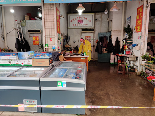(1)工作人员体温枪测量水产大厅A13店面从业人员体温异常,立即上报组长,并通知现场应急小组。