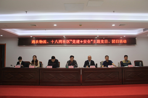 10月16日上午,通农物流党总支、团总支和十八湾社区党总支在通农物流展销楼四楼大会议室开展“党建+安全”主题党日、团日活动。