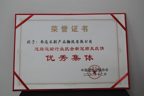 2020年新冠肺炎疫情发生以来,通农物流作为南通市最大菜篮子,为保障农产品正常供应,勇担责任,主动作为,一手抓疫情防控,一手抓稳价保供,以防控保供“十六好”工作要求,通农物流全体干部职工用拼搏和实干,积极助力道路运输企业疫情防控及复工复产各项工作。一是疫情防控有速度;二是保供稳价有力度;三是暖心工程有温度,用忠诚和担当换来了百姓的安全和幸福。