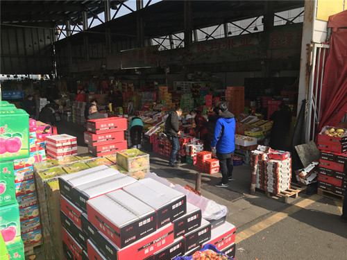 水果交易区内,放眼望去,赣南脐橙、阿克苏苹果、陕西猕猴桃、海南西瓜、广西砂糖橘、智利车厘子、泰国龙眼……各种水果应有尽有,货源供应充足,各种水果精品礼盒摞成小山。