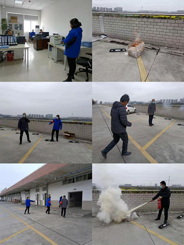 消防演练前,邢经理对大家讲解了演练的主要目的及演练过程。随后全体人员根据消防应急预案进行实地演练:1、工作人员巡查过程中发现纸箱发生自燃;2、立即打电话向领导汇报;3、领导接到电话组织人员开展灭火行动;4、工作人员寻找干粉灭火器;5、工作人员拿到干粉灭火器奔赴现场进行火灾扑灭;6、立即疏散人群,清理现场,应急演练结束。