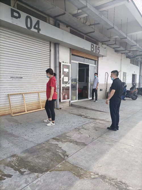 整个检查内容包括南侧到北侧的环境卫生情况、各消防通道间是否存在乱堆杂物、各商户分拣车间内消防安全、用电安全是否存在违规现象。检查过程中发现配送南侧公共区域及雨水沟里存在大型垃圾,环境卫生比较差,保洁人员存在打扫卫生不及时的现象。安全方面,多数商户意识有所提高,以往频繁出现的问题尚未出现。在A02、A03、A04仓库间内发现有一根粗的水管存在掉落的现象,工作人员立即上报物业,将该现象整改到位,消除了安全隐患。检查结束后,工作人员找到保洁师傅沟通环境卫生情况,并要求要做到及时清扫垃圾。