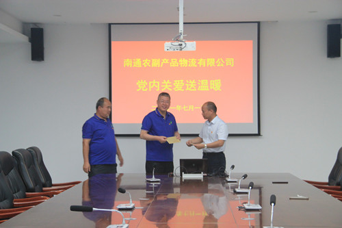 活动结束以后,通农物流党总支书记阚君成对袁东、李爱民两位党员进行党内关爱慰问。袁东同志在手术还未康复的情况下带头冲向一线,作为一名党员干部积极投身于南通市“进口冷链食品监管仓”的紧急筹建中,为抗击疫情贡献出自己的一份力量。李爱民同志是水果区一名普通职工,平时在自己的岗位上兢兢业业,家中经济条件困难,但不影响他积极阳光的工作心态:献血、拔河…只要是能鼓舞人心、团结上下的活动,他都积极参加。