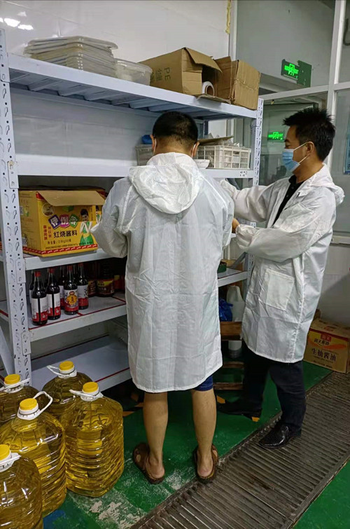 本次检查主要以食品安全、用电安全两方面为主,针对以往检查中安全问题频次高的商户进行重点检查。曹经理、陆主办及工作人员先后对康弘餐饮、新鲜达及云龙配送三家商户仓库内进行检查。经检查发现用电安全方面,商户仍存在室内充电的现象;食品安全方面,个别商户存在食材过期存放未及时处置的现象。针对该现象,曹经理对商户进行现场安全教育并当即采取措施,要求工作人员将过期的食材进行清空,暂且放在监管仓库内,同时根据安全管理规定采取相应的处罚。另外,工作人员在检查商户索票索证方面,发现仍然还存在部分票据票证不齐全、供货商票据信息未填完整、印章未盖的情况,对此进行现场口头教育并要求将不完整的票据信息及印章于三天内补齐,确保索票索证的信息完整。