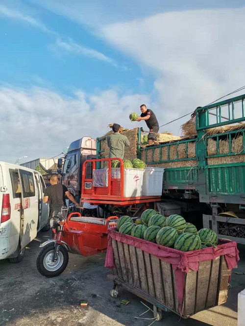 近期南通酷暑炎热,高温来袭,西瓜成为最为畅销的水果。来自新疆、河南、东北的西瓜源源不断地运往水果交易区,交易量由原来的每天一百多吨飙升到现在的每天三百多吨。