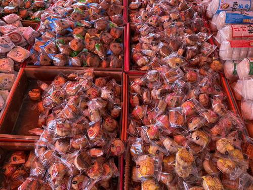进入干货交易区,可以发现月饼已经悄然上市,各种礼盒大量到货,节日的氛围浓重,据C09、11号店铺老板介绍,传统的莲蓉月饼、五仁月饼、豆沙月饼仍是市场销售的主流。除此之外,一些年轻人喜欢的口味也是种类繁多,哈密瓜、草莓、核桃瓜子仁、冰皮、流心、奶黄等口味应有尽有,吸引了不少消费者前来选购。有论个卖的,单个价格1.5元—5元;也有论斤卖的,每500克价格8元;还有礼盒装的月饼,每盒价格20元—200元,能够满足不同消费者的需求。距离中秋佳节还有将近一个月的时间,目前月饼的销量还未到顶峰,消费者的采购也多以尝鲜为主,采购量不大。(干货区 吴珍凤)